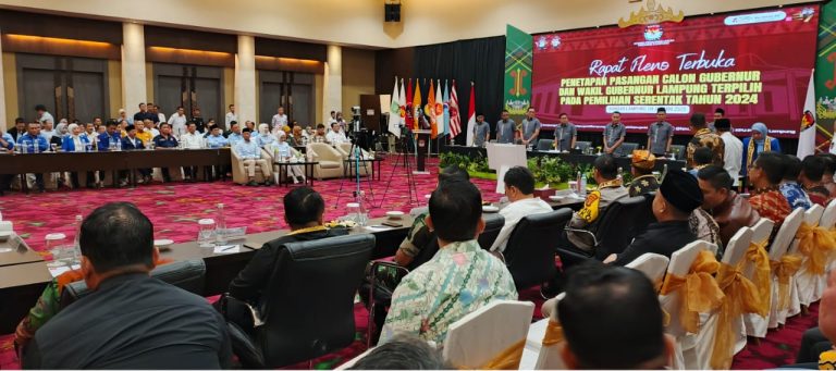Rapat tersebut di hadiri langsung oleh PJ Gubernur Samsudin, perwakilan KPU RI forkopimda dan kepala badan Kesbangpol Lampung M. Firsada. dan juga hadir yang mendampingi pasangan calon yaitu partai pengusung dan partai pendukung.